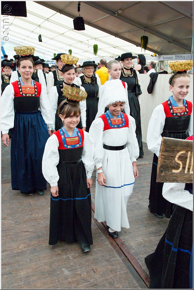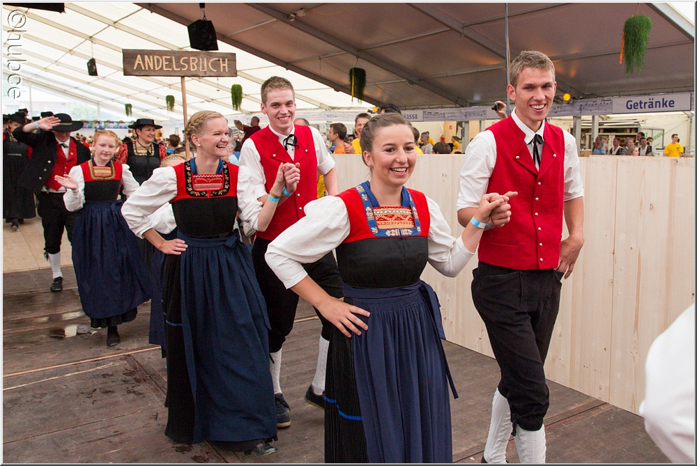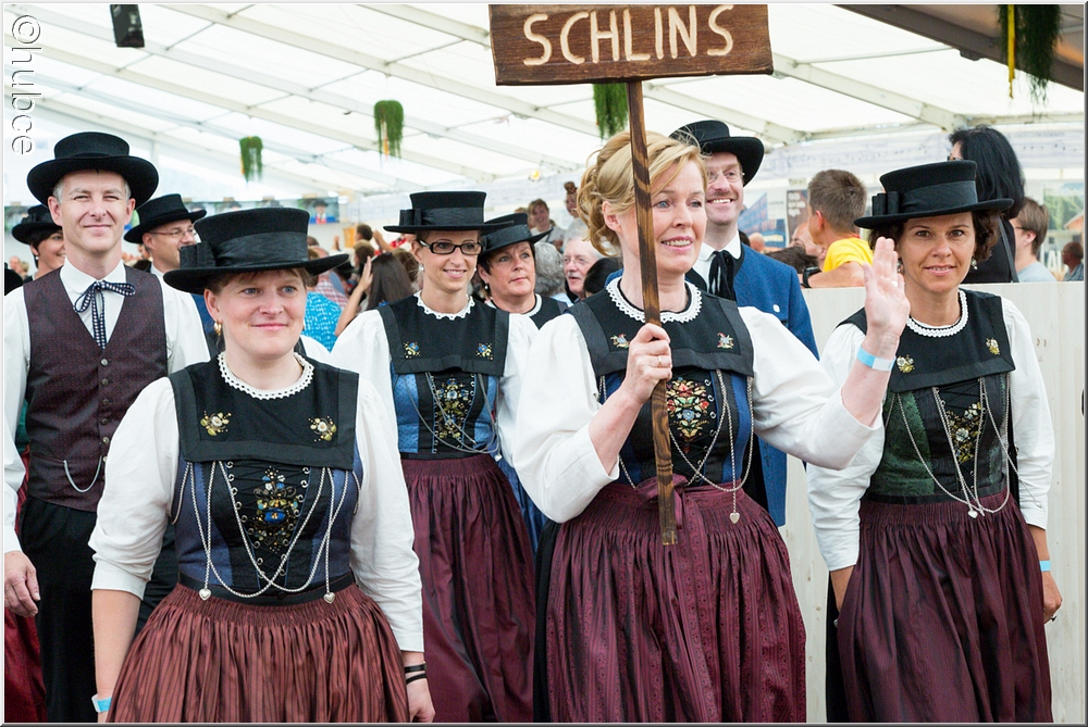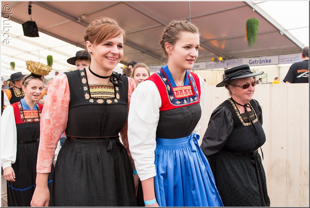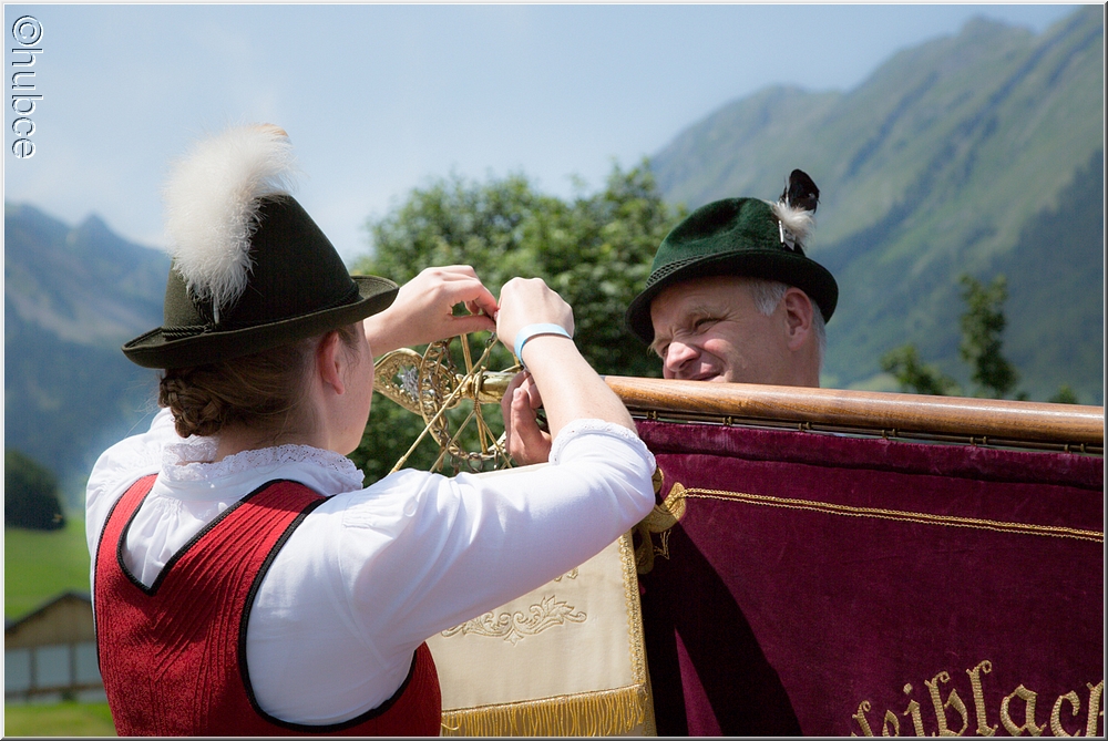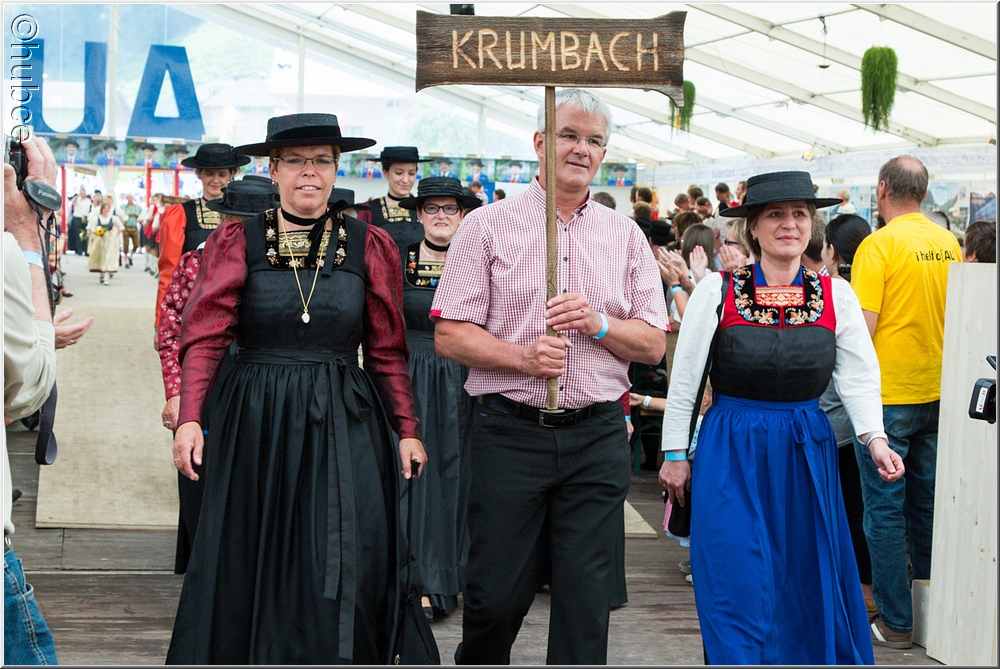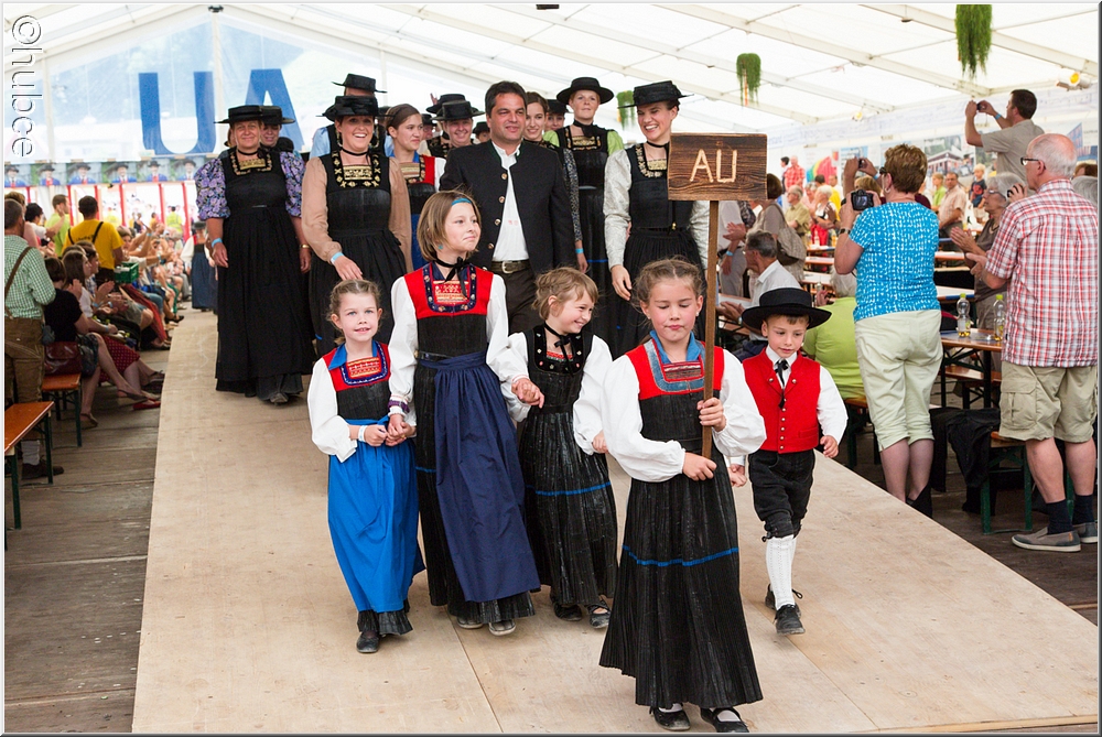 Beim Bezirksmusikfest in Au war Tracht das Thema. Neben den Trachten-Abordnungen aus den verschiedenen Bregenzerwälder-Gemeinden waren auch Trachtengruppen aus anderen Gegenden Vorarlbergs, Tirol und aus Deutschland bei diesem farbenfrohen Anlass am Festsamstag-Nachmittag mit von der Partie.