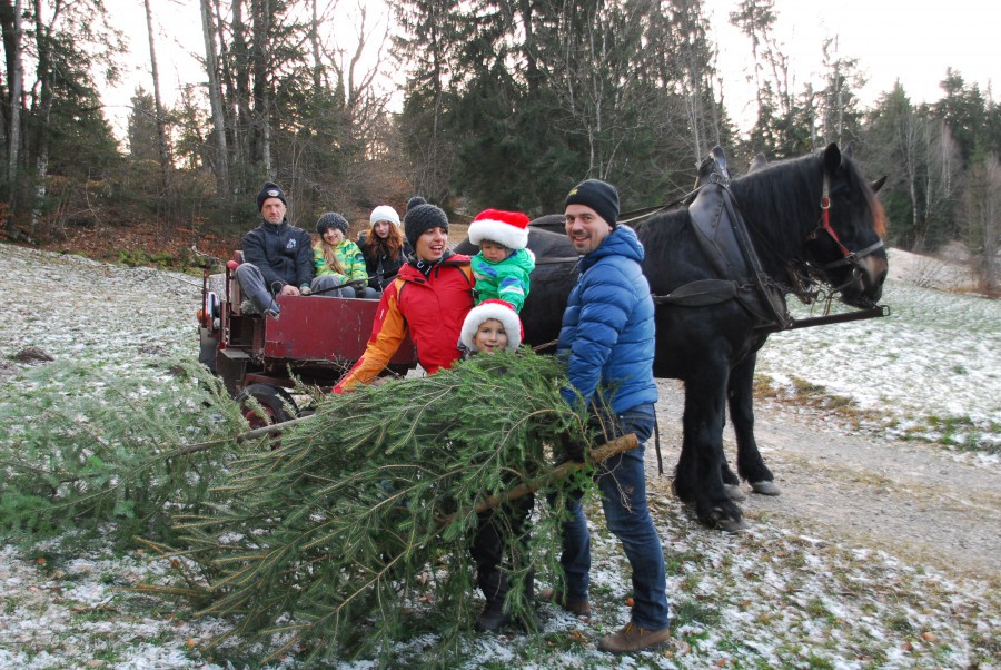 1. mache ein kreatives/lustiges Foto von der „Ernte“ oder vom Kauf des Christbaumes