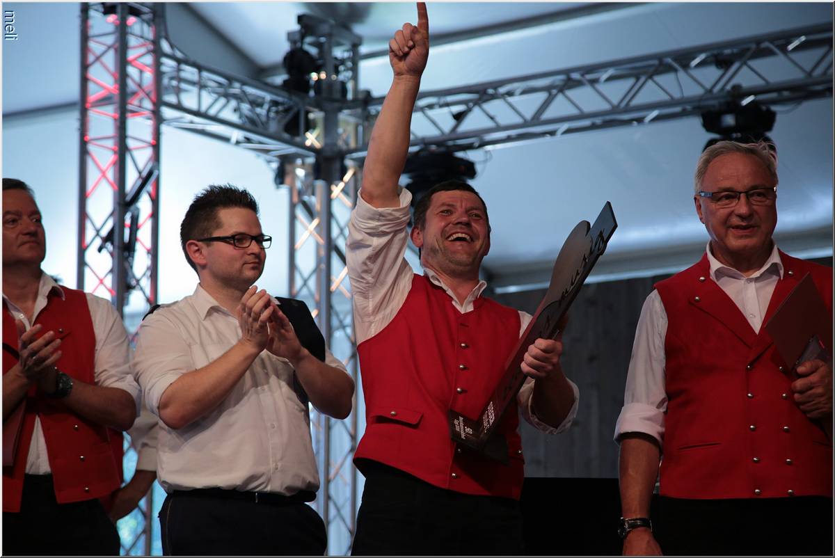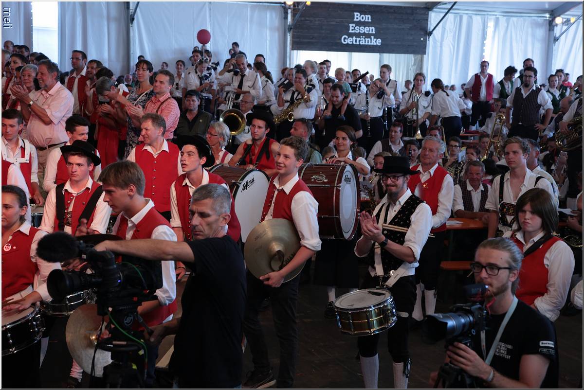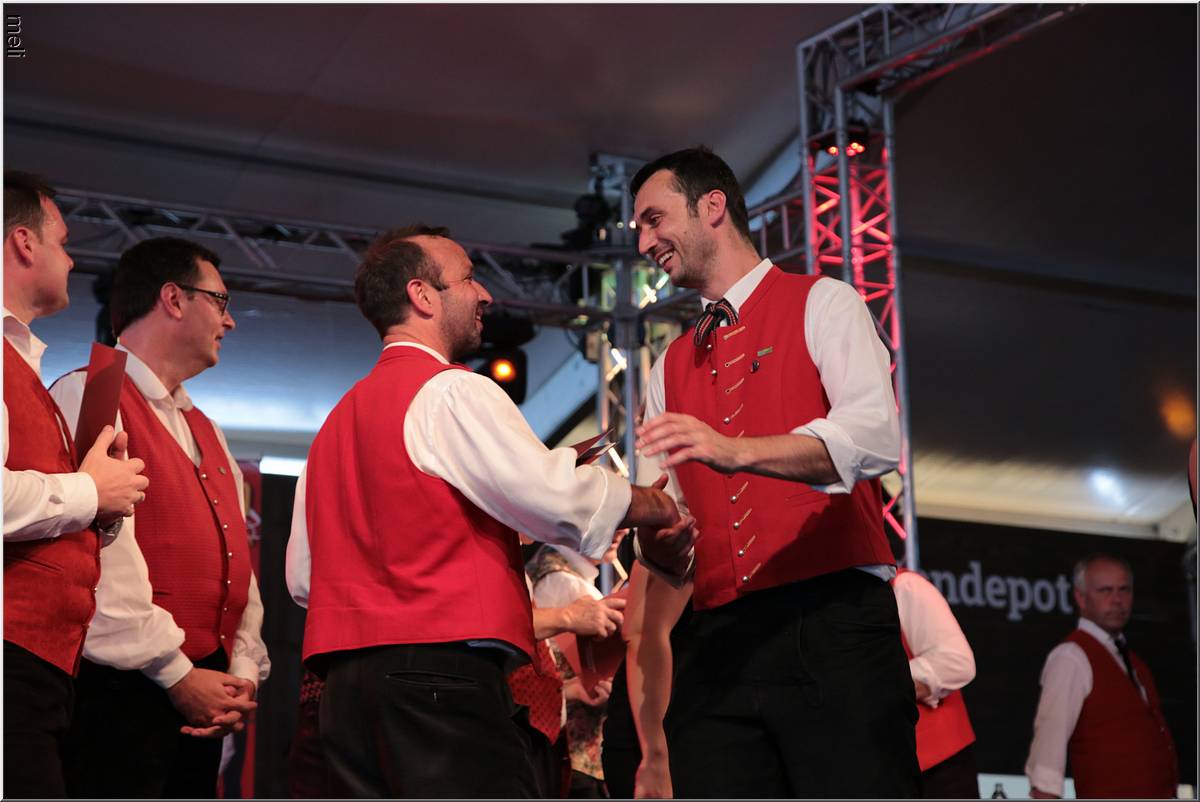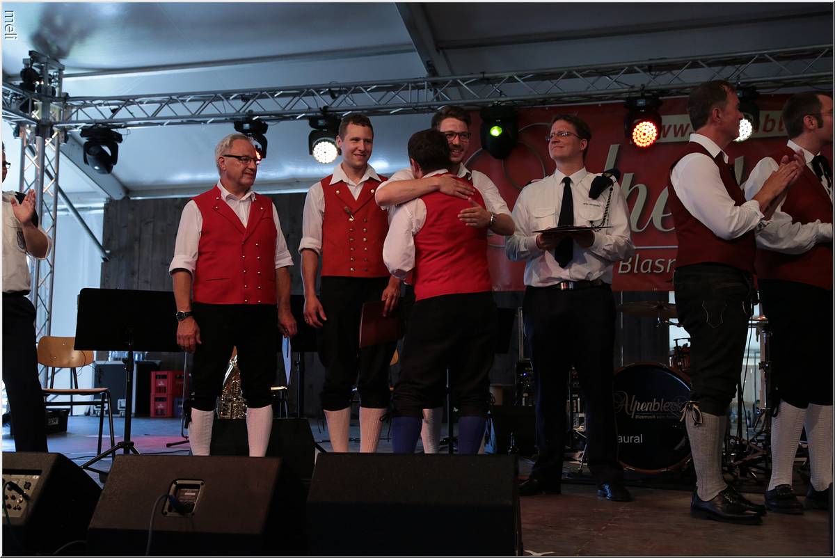 Groß ging es her beim Gesamtchor aller Musikkapellen – danach folgte die Bekanntgabe der Ergebnisse der Wertungsspiele – Jubel total für die ausgezeichneten Musiker. Feiern bis in den Abend im Hauptzelt. Weiter sorgten für Stimmung in den Zelten. Alpenblech, Uralp-Böhmisch, DJ Gegs und Die Helden – die junge Oberkrainer-Formation aus Slowenien.