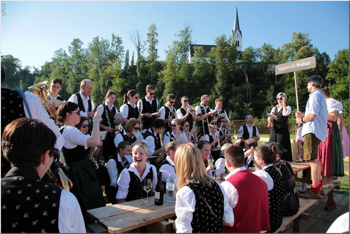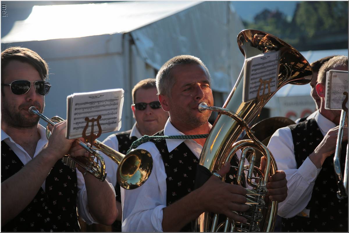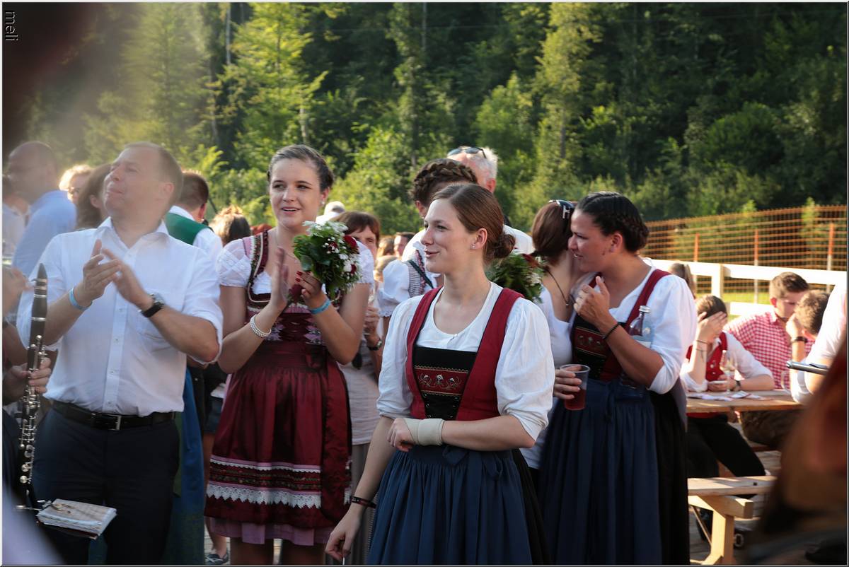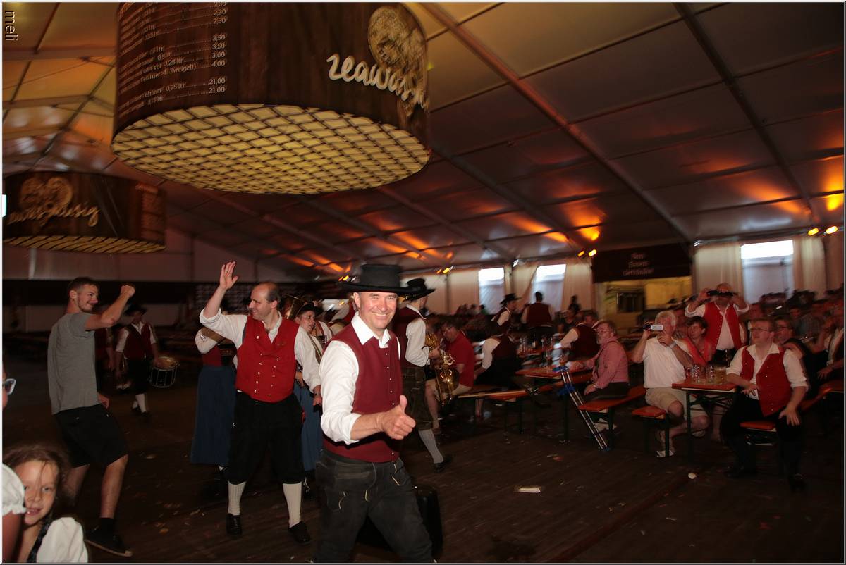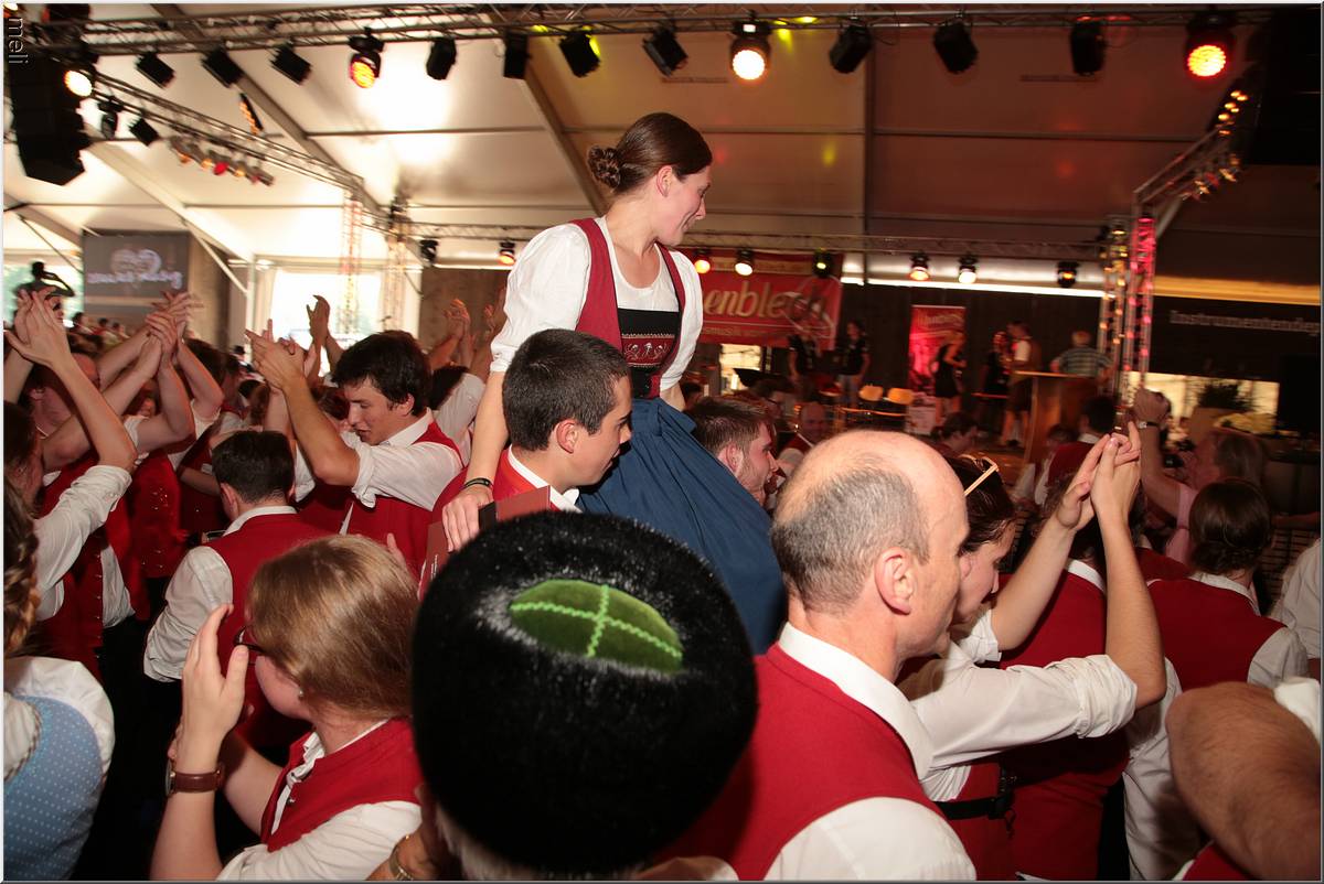 Groß ging es her beim Gesamtchor aller Musikkapellen – danach folgte die Bekanntgabe der Ergebnisse der Wertungsspiele – Jubel total für die ausgezeichneten Musiker. Feiern bis in den Abend im Hauptzelt. Weiter sorgten für Stimmung in den Zelten. Alpenblech, Uralp-Böhmisch, DJ Gegs und Die Helden – die junge Oberkrainer-Formation aus Slowenien.