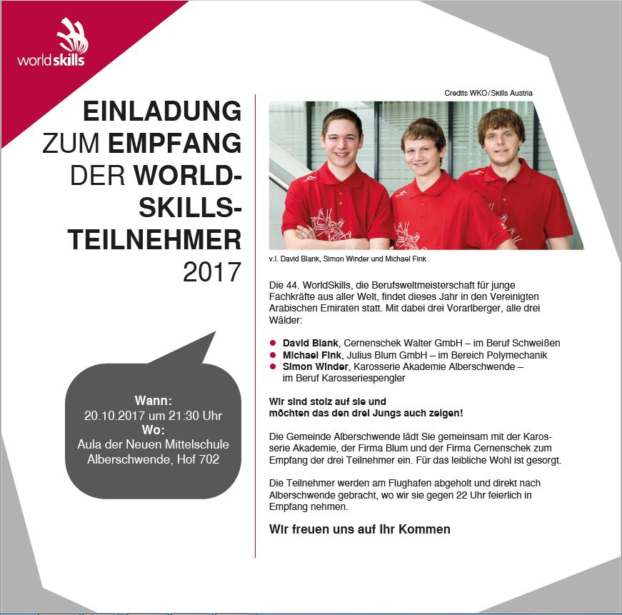 Einladung zum Empfang der Wordskillsteilnehmer 2017