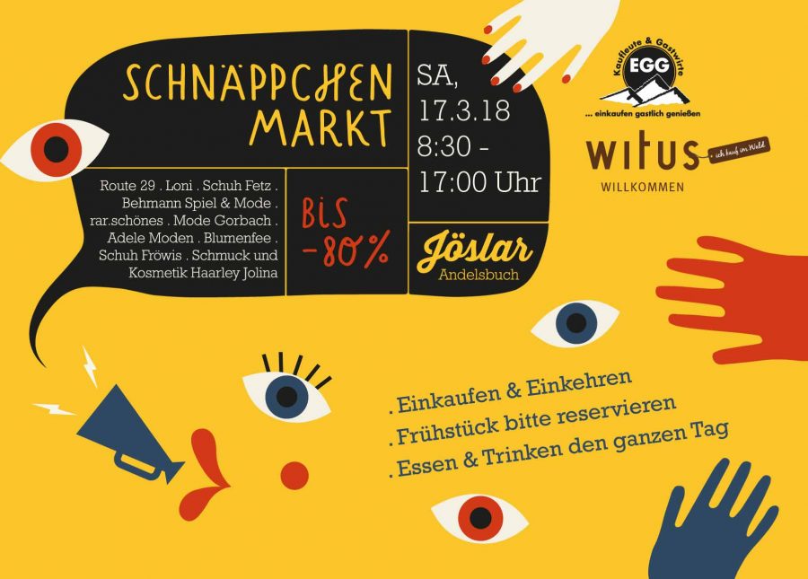 Schnäppenmarkt bis – 80 % am Samstag, 17.03.2018 von 8:30 – 17:00 Uhr im Jösler in Andelsbuch