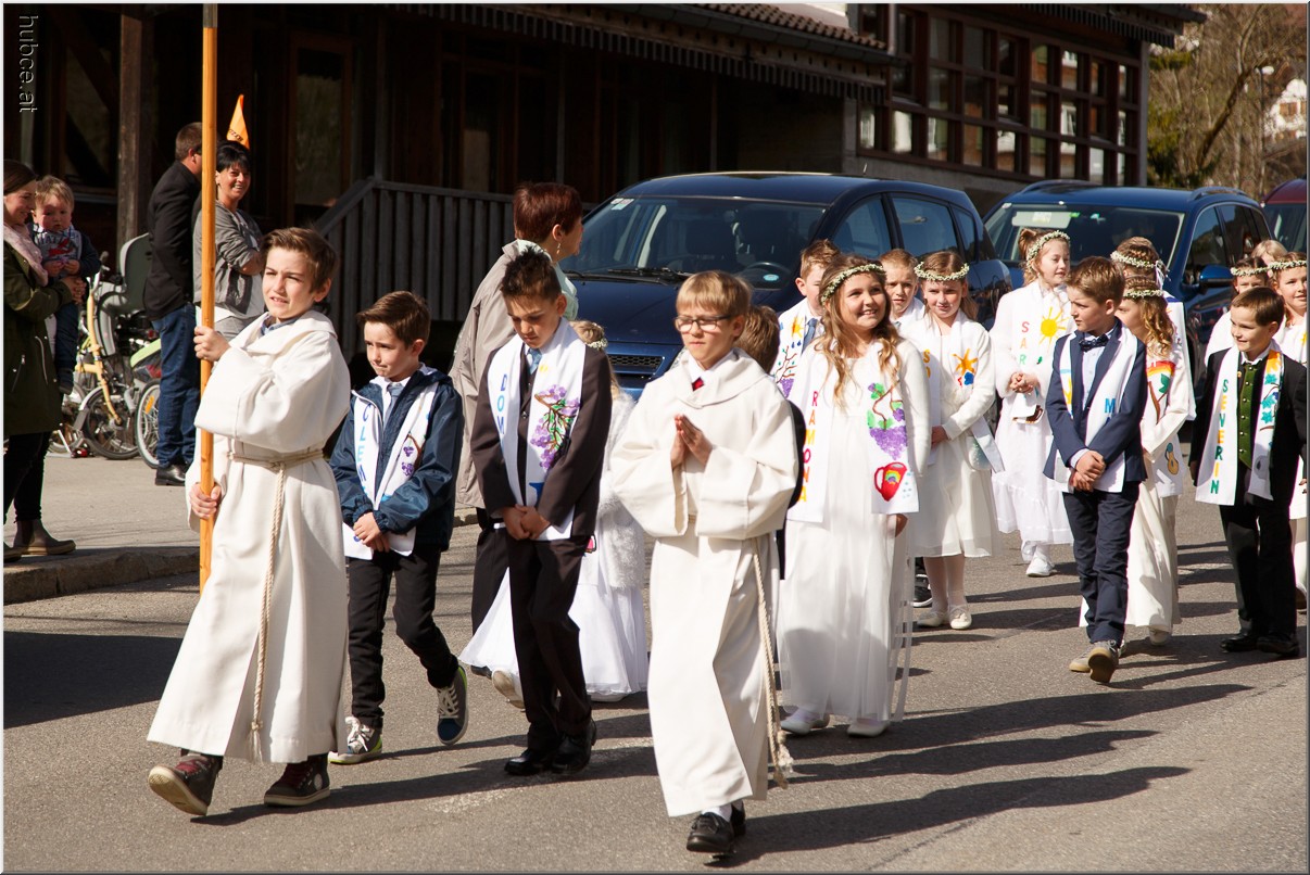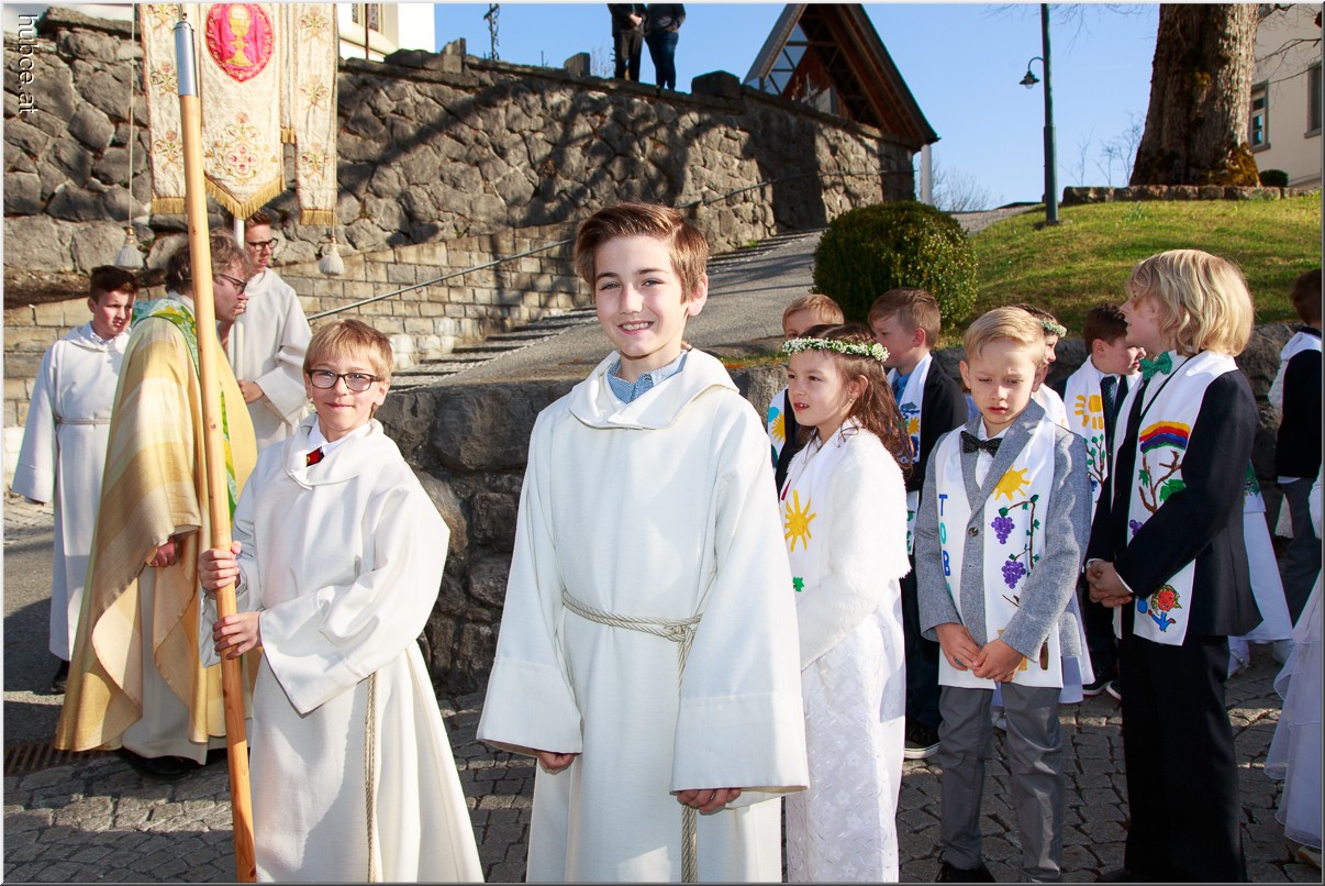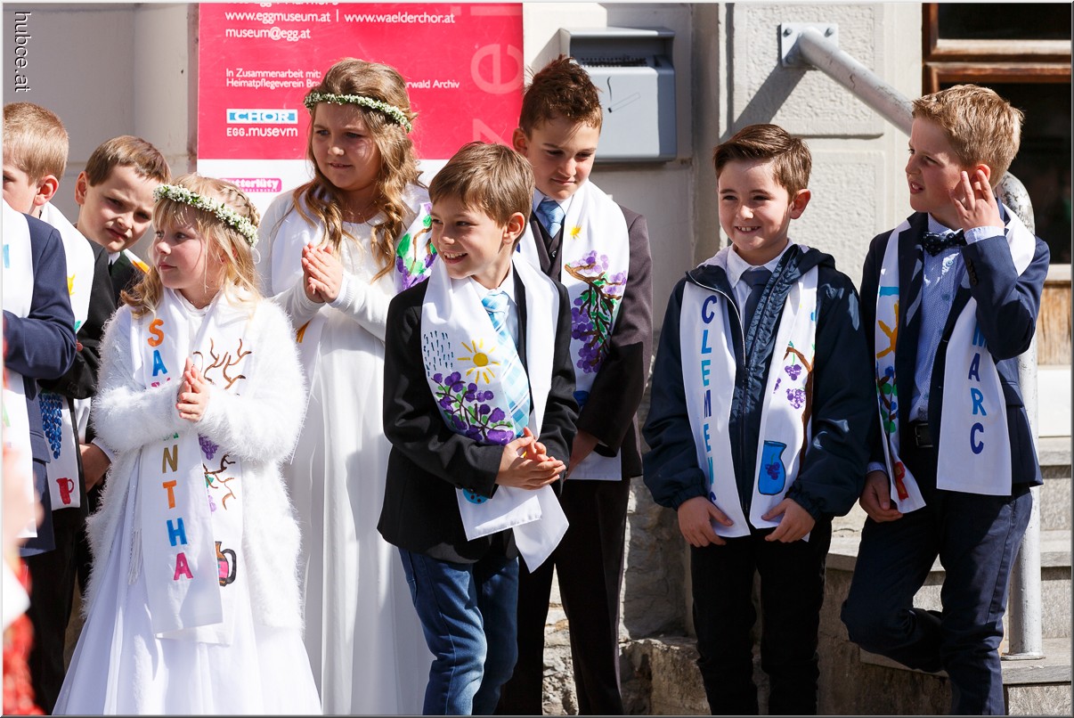 Bei perfektem Frühlingswetter trafen sich die Egger „Erstkommunikanten“ mit Eltern, Geschwistern, Paten und Lehrern beim Vereinshaus, um gemeinsam, feierlich begleitet vom Musikverein Egg, in die Pfarrkirche einzuziehen um an diesem Tag das Sakrament der hl. Kommunion zu empfangen.