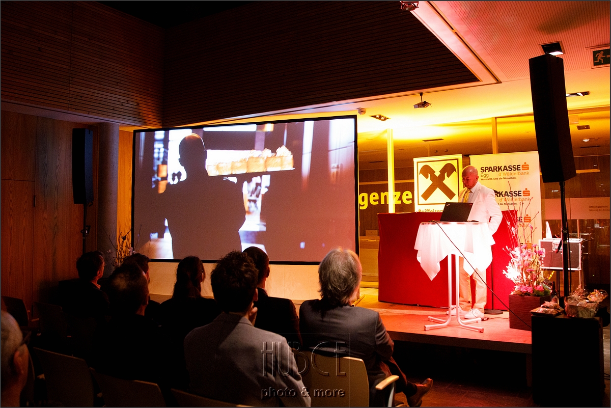 Nach der Begrüßung durch Bürgermeister Paul Sutterlüty der vollbesetzten AULA des Impulszentrums in Egg und einem kurzen Überblick über das Wirtschaftsleben von Egg der letzten Monate durch den Wirtschaftsreferenten wurden durch Moderator Heinz Wendel vier „Egger Talente“ in gekonnter Manier vorgestellt.