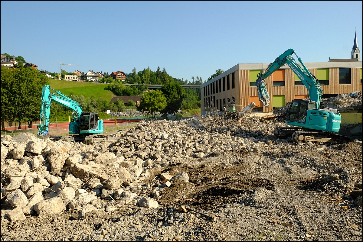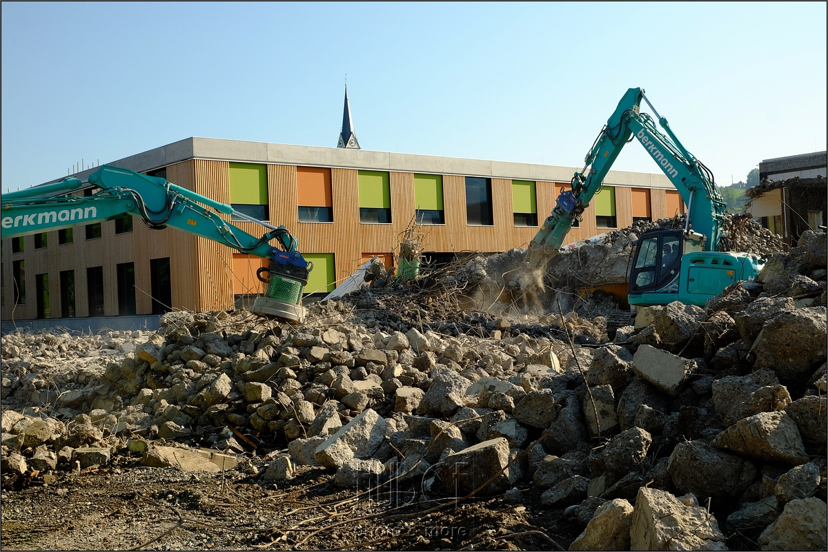 Aktuelle Aufnahmen vom Stand der Abbrucharbeiten der alten Hauptschule Egg.