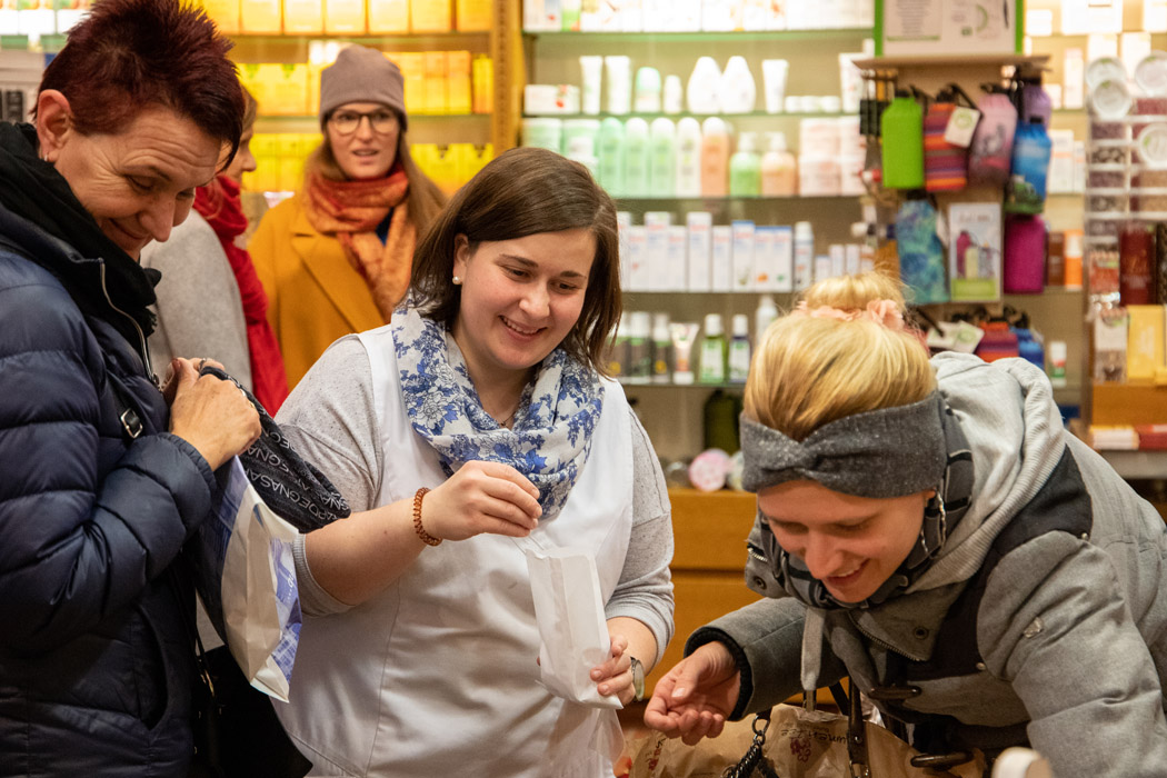 Mitterberger mit Teespezialitäten, bei Route 29 gab‘s Braten aus dem BBQ Smoker, Blumenfee, Gorbach, Schuh Fetz, im Weltladen gab’s hausgemachte frische Waffeln, Kaffee und Punsch, Goldschmiede Gassner, Skinfit, Wohnsinn und das Christkindl-Postamt, der Verein „Hand in Hand“ eröffnete wieder die Engelswerkstatt im Postamtsgebäude, Loni machte frische Zimtschnecken mit Punsch und selbstverständlich wieder Kinderschminken für die Kleinen. Auch Panto Outdoor, Plano Wohn- und Küchenstudio und traditionell Behmann Spiel, Papier und Mode mit niedlichen Schafen zum Streicheln und Keksle backen für Kinder waren wieder mit von der Partie.