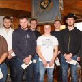 Bei den Lehrabschlüssen durften wir Alexander Feuerstein, Ausserdorf als Spengler, Konstantin Ciola, Kammern, Johannes Meusburger, Stadlermöser und Andreas Waldner, Unterbach als Zimmerer, Kaspar Fetz, Hub als Zimmereitechniker und Peter Sutterlüty als Senn begrüßen.