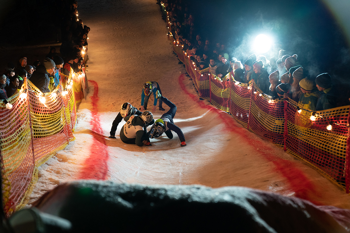 Am Samstag ging‘s weiter mit dem ‚Ice Hill Run‘. Den Hügel hochrennen – das war die Aufgabe für die 45 TeilnehmerInnen. Klingt erst mal machbar. Aber die Strecke war vereist und erlaubt waren nur Straßenschuhe. An den Start gingen immer 4 Läufer. Die zwei Läufer, die den vereisten Hügel nach einer Minute am weitesten erklommen hatten, kamen eine Runde weiter. Da hieß es Anlauf nehmen, Gas geben, Position verteidigen, runter rutschen, neu durchstarten, … für die Zuschauer eine wahre Freude. Innerhalb des Zeitlimits wurde der Ice Hill nur ein einziges Mal bezwungen und zwar vom Sieger Manuel Holzer (Andelsbuch), der sich somit die 1000 Euro Hill-Run-Preisgeld sicherte. Aber auch Fürstuos Klus war im Special-Show-Run bis an der Spitze des Ice Hills. Er zeigte einen ganz besonderen Lauf, denn er bezwang den Ice Hill nämlich barfuß. Danach ging’s mit der Party weiter und das DJ-Duo Leisi & Lohsi heizten den Festgästen ordentlich ein.