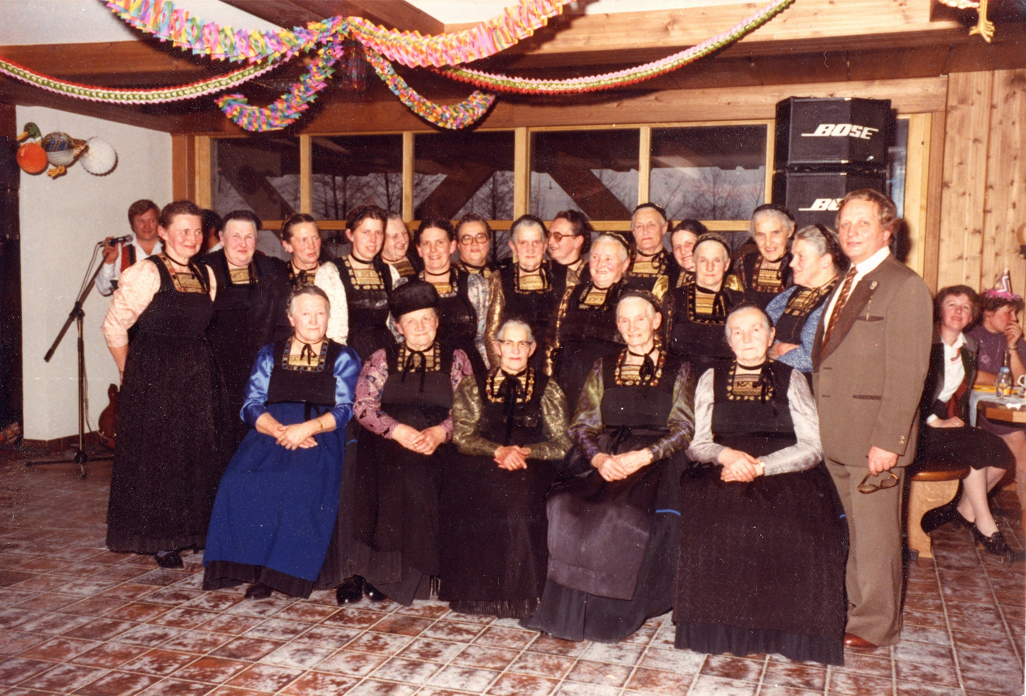 Stolz präsentiert sich auf dieser Aufnahme Ulrich Sutterlüty mit den Egger Jüpplerinnen anläßlich eines „Juppokrönzle´s“ im Sutterlüty-Restaurant im Wälderpark.