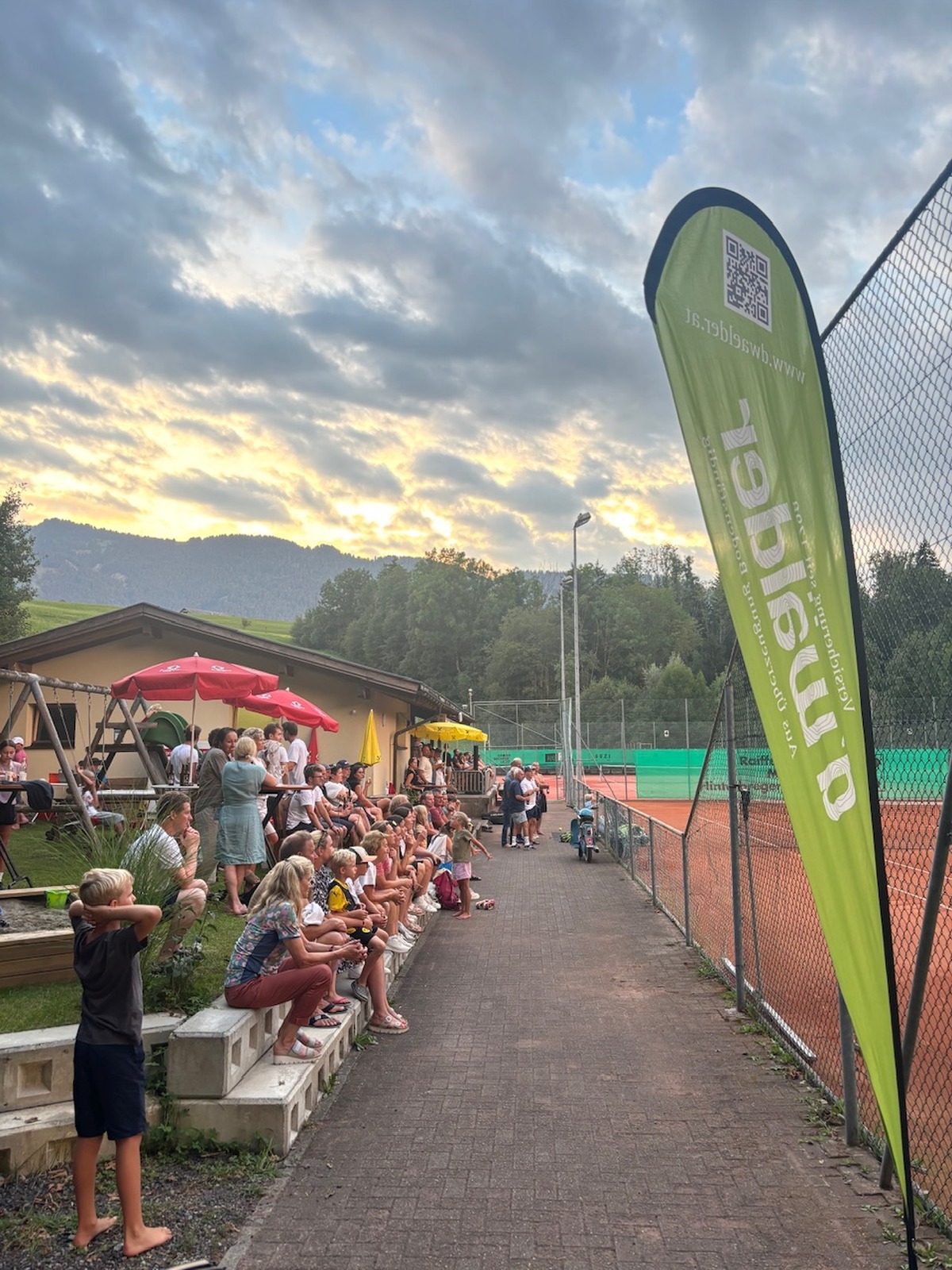 Natürlich kamen auch die geselligen Momente nicht zu kurz – der Höhepunkt war dabei der Freitagabend: Während einige auf der Terrasse zu den ausgewählten Klängen von DJ „Wack“ alias „Jonny be good“ tanzten, genossen andere bei einem Cocktail die Gespräche nicht nur über Tennis oder bestaunten auf dem dunklen Centercourt das Tennistalent der fünfjährigen Katharina aus Andelsbuch. Ihr Name wird in Verbindung mit diesem Turnier in Zukunft wohl noch öfters genannt werden.