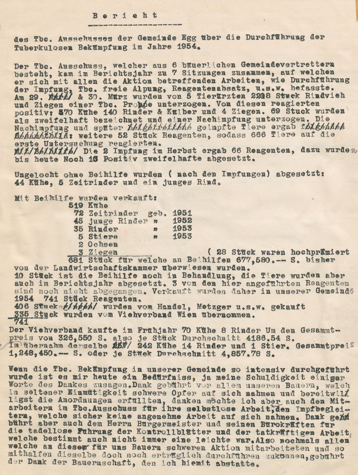 Tuberkulose Bekämpfung der Viehbestände in Egg 1954. Aus gegebenem Anlass ein Bericht, der vor 70 Jahren verfasst wurde. Danke an Klaus für den Bericht.