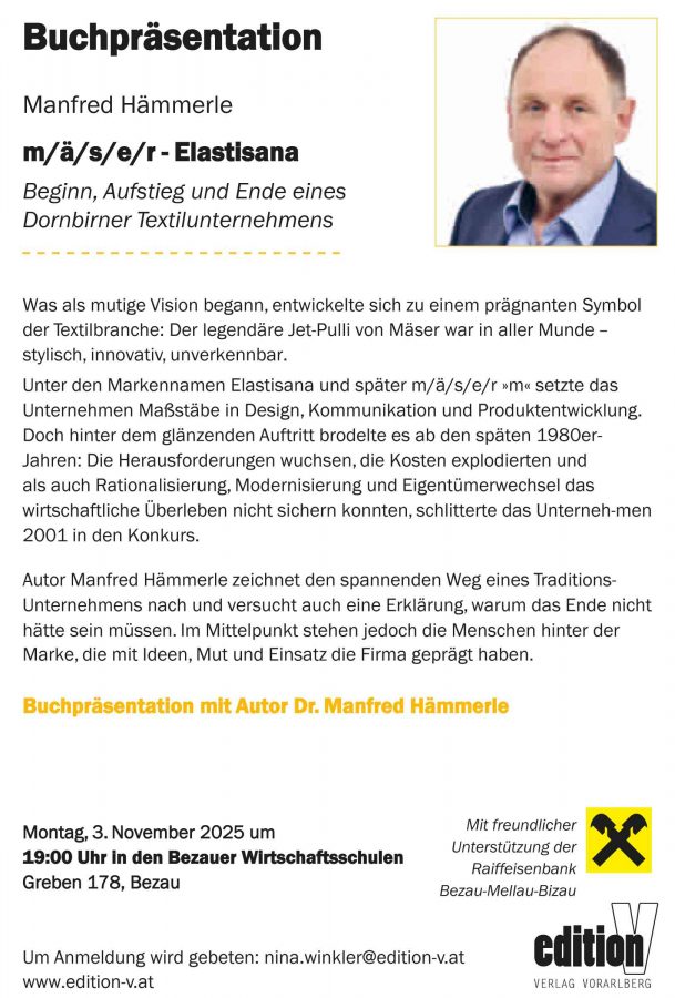Montag, 03.11.2025 um 19 Uhr in den Bezauer Wirtschaftsschulen