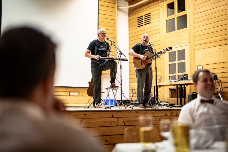 Tim Catering empfing uns um 19 Uhr mit Sekt und Bier. Danach führten Obmann Matthias Meusburger und Ramona Liebschick durch den Abend. Musikalisch umrahmt wurde die Feier von Richard Natter und Ulli Troy, die uns mit ihren musikalischen Schmankerln zum schmunzeln brachten.