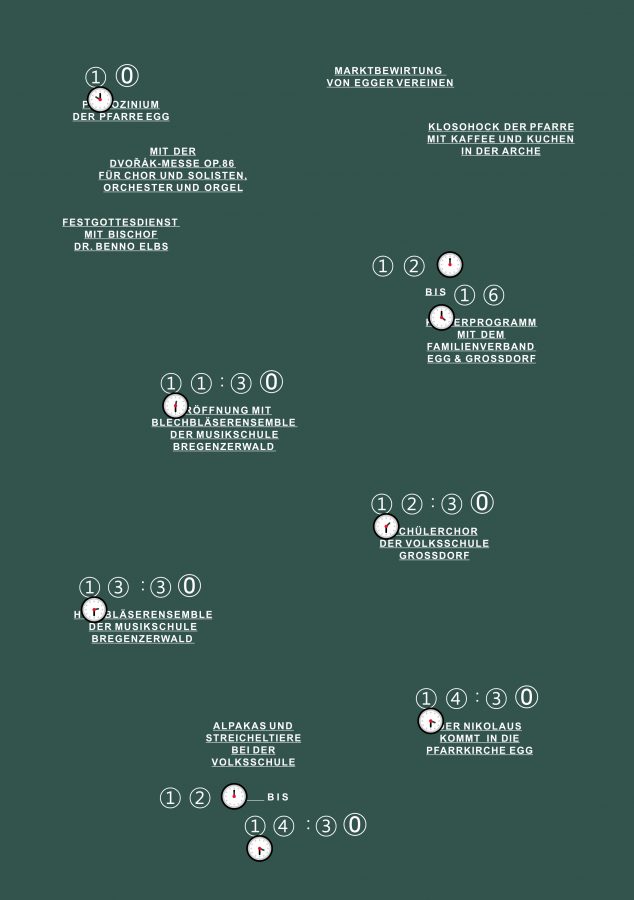 Für kleine Marktbesucher von 12 Uhr bis 16 Uhr Kinderprogramm mit dem Familienverband Egg & Großdorf und bis der Nikolaus kommt sind bei der Volksschule Egg Alpakas und Tierle zum Streicheln.