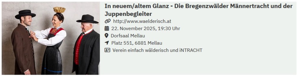 Auch der Verein iNTRACHT Bregenzerwald stellt an diesem Abend den Juppenbegleiter vor – ein praktisches, hochwertiges Druckwerk mit wertvollen Hinweisen zu Trage-, Pflege- und Kombinationsmöglichkeiten der Tracht.