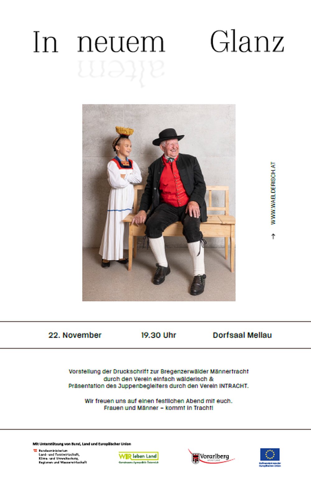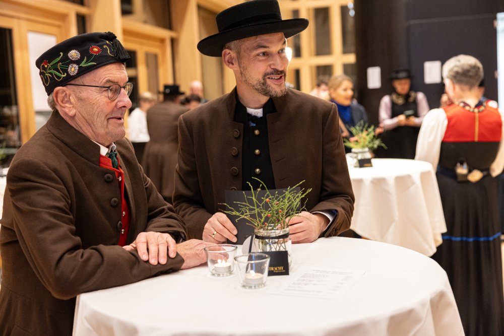 Mit einem eindrucksvollen Festabend im Dorfsaal Mellau präsentierten der Kulturverein einfach wälderisch und der Verein iNTRACHT zwei neue Publikationen, die sich der Bregenzerwälder Tracht in all ihrer Vielfalt widmen. Im Zentrum der Aufmerksamkeit stand die Druckschrift „In neuem / alten Glanz“, das Urs Schwarz nach jahrelanger Recherche erstellt hat.