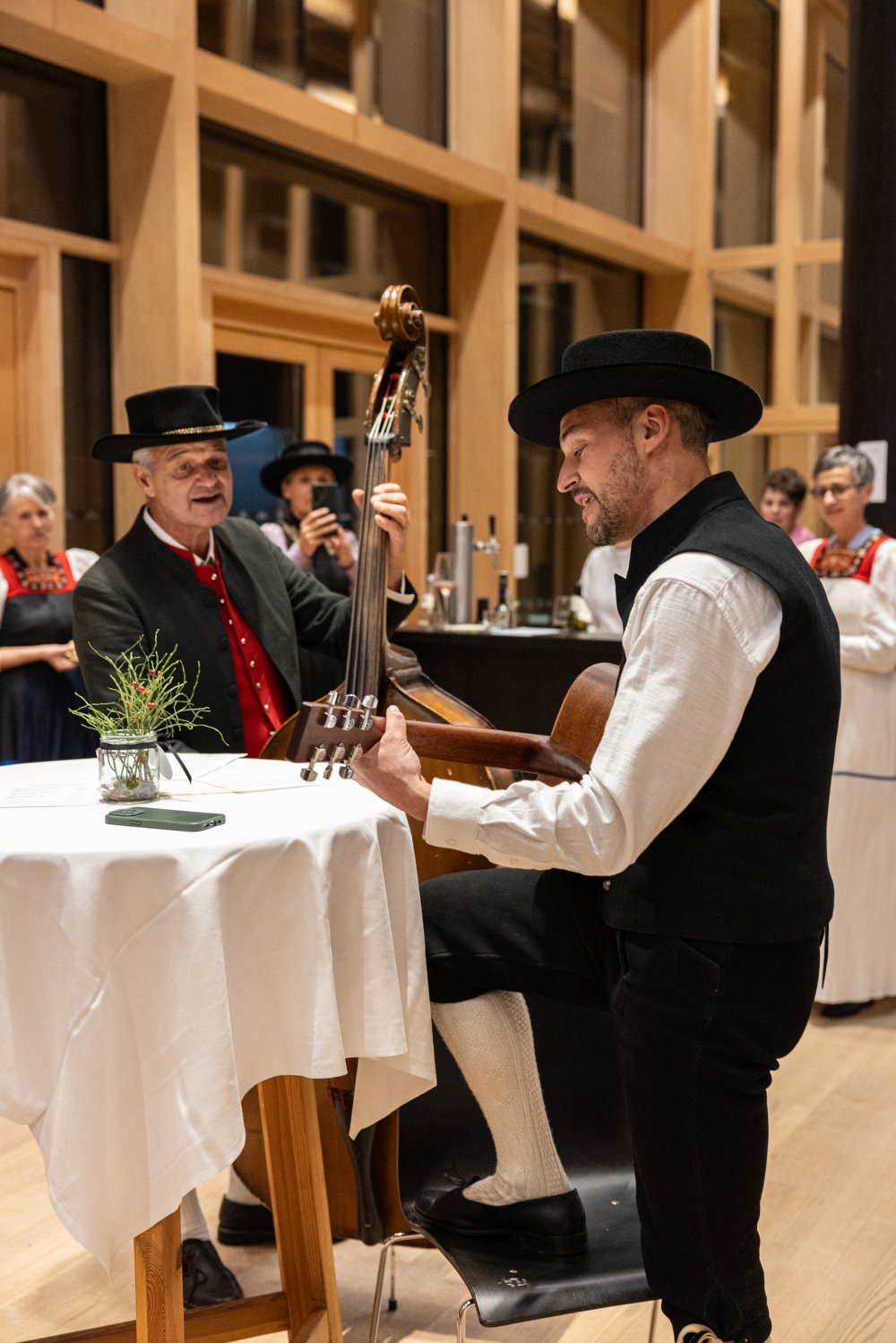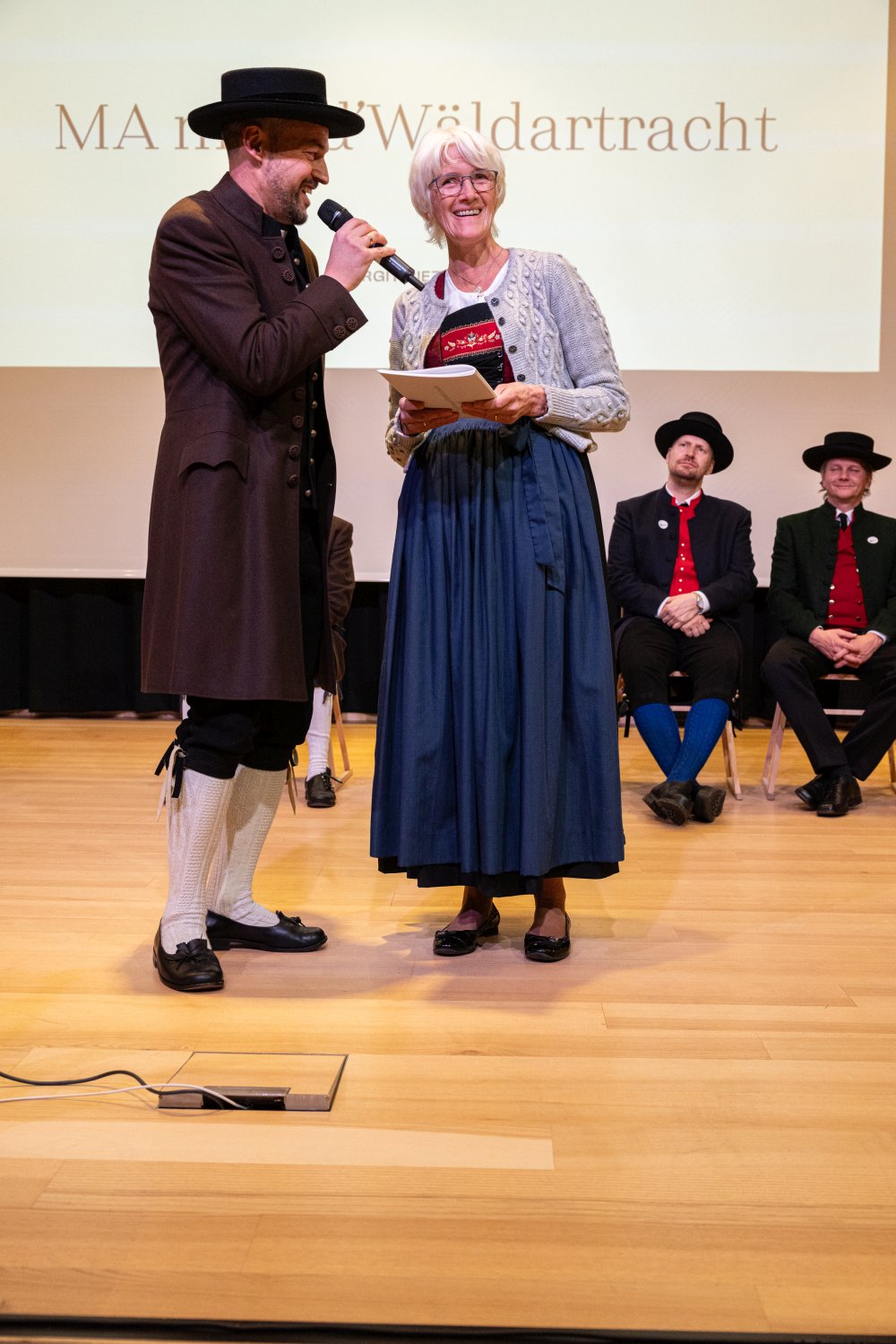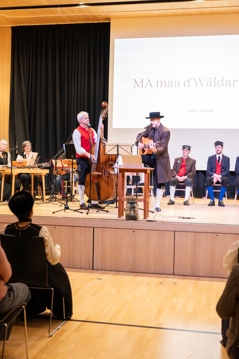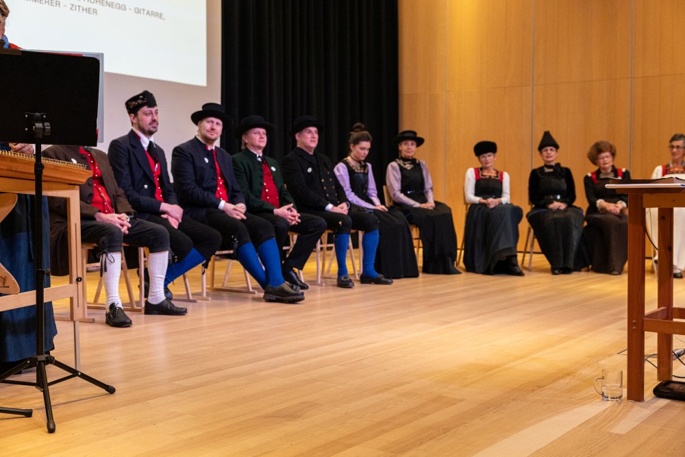 Eigens für diesen Anlass verfasste die Mundartdichterin Birgit Rietzler das Gedicht „MA maa d‘Wäldertracht“, das sie selber vortrug. Darauf folgte die Uraufführung des vertonten Gedichts durch Urs Schwarz und Luis Rehm; ein musikalischer Genuss.