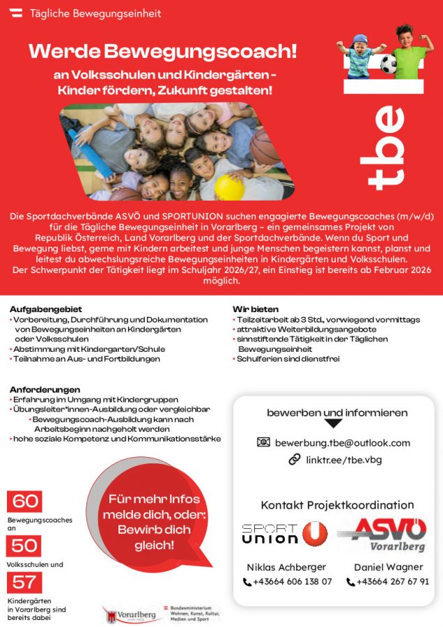 23.12.2025 10:10 von mein Beitrag Werde Bewegungscoach an Volksschulen und Kindergärten Infos im Anhang! Wir freuen uns auf dich! STICHWORTE / TAGSArbeitsmarkt Artikel teilen 80 0 Deine Meinung Name * Kommentar Bild-Upload Bilder auswählen Bilder-Upload