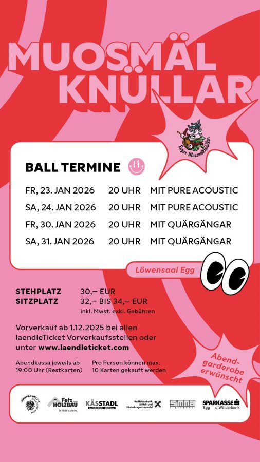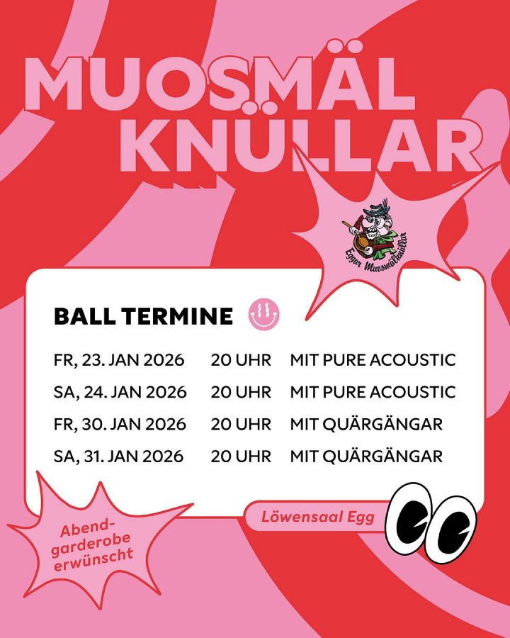 Mit großer Vorfreude dürfen wir euch unsere Termine für die legendären Muosmälknüllar-Bälle bekanntgeben!