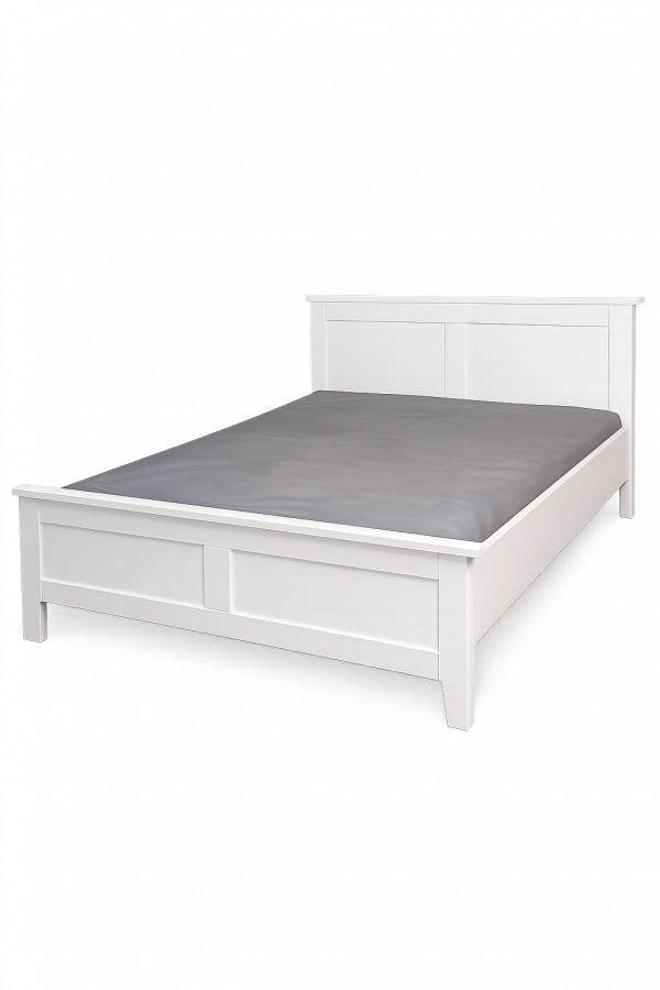 Schönes, stabiles Bett aus weiß lackiertem Holz in zeitlosem Design.