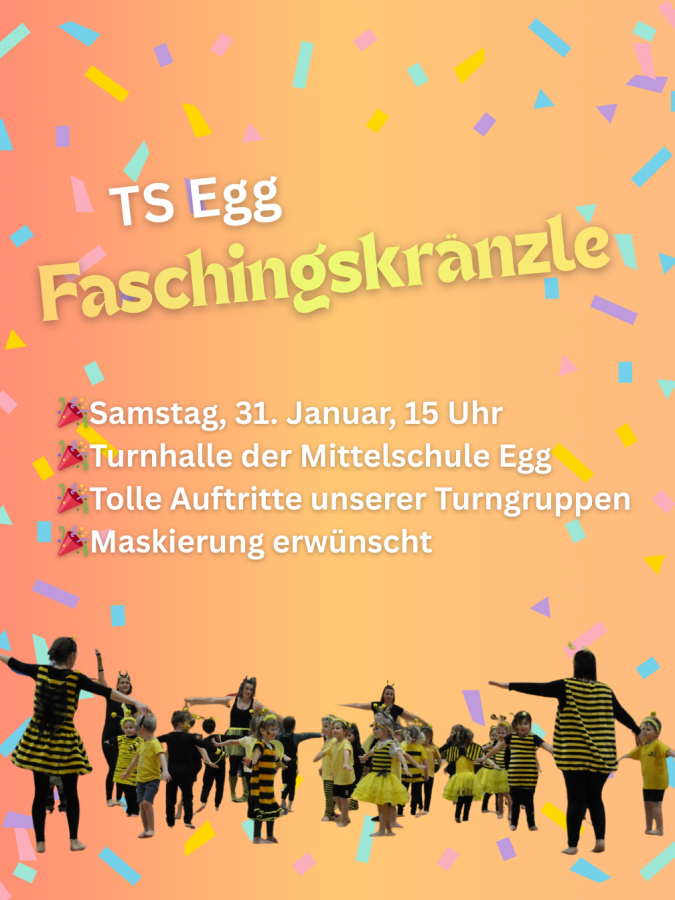 30.01.2026 10:42 von egg-news TS Egg Faschingskränzle – SA. 31.01 Die Turnerschaft Egg feiert ebenfalls Fasching und freut sich über viele Besucher:innen. Details siehe Anhang. Artikel teilen 29 0 Deine Meinung Name * Kommentar Bild-Upload Bilder auswählen Bilder-Upload