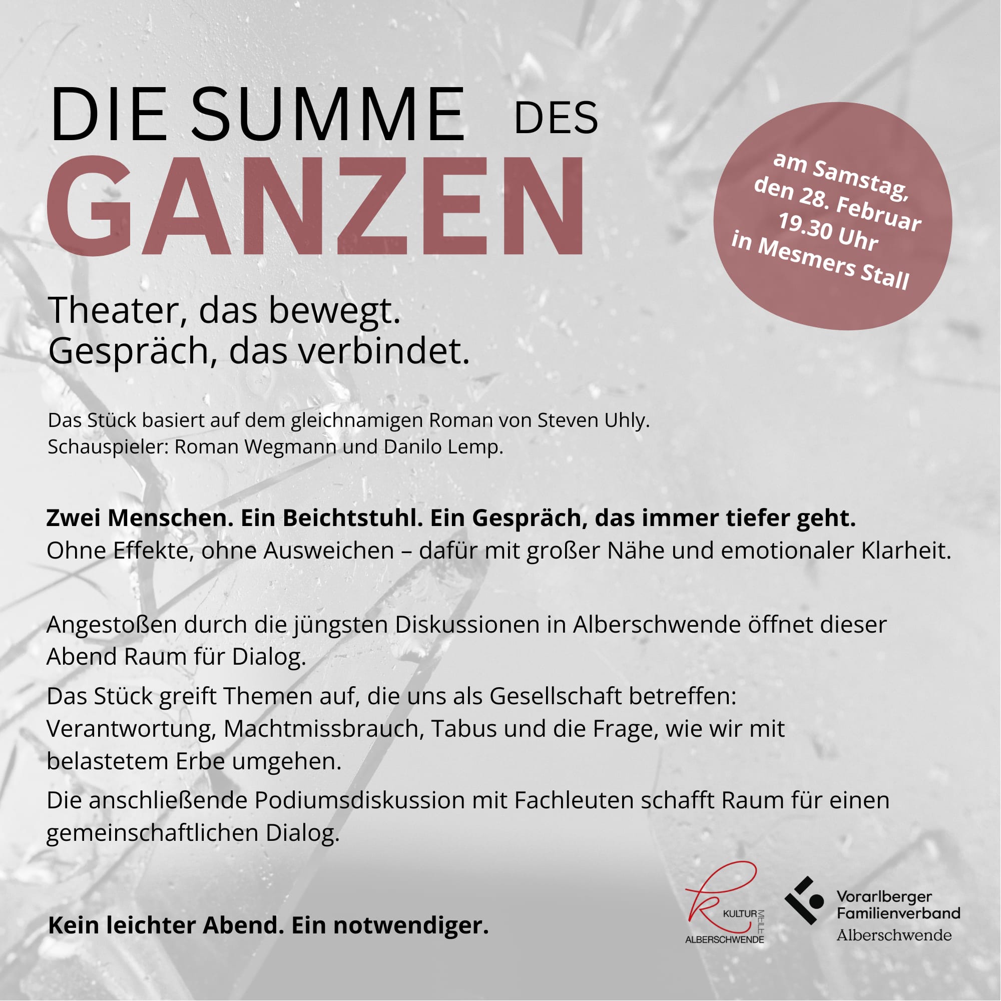 02.02.2026 09:28 von egg-news Theater (das bewegt) in Alberschwende – SA, 28.02 Die Summe des Ganzen – Theater das bewegt in Alberschwende am 28. Februar Artikel teilen 490 1 Deine Meinung Name * Kommentar Bild-Upload Bilder auswählen Bilder-Upload Braucht man dafür Karten?