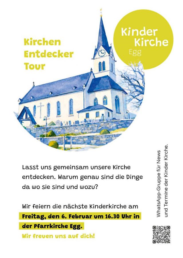 All das und noch viel mehr erfahrt ihr bei der nächsten Kinderkirche am Freitag, den 6. Februar um 16.30 Uhr in der Pfarrkirche Egg.