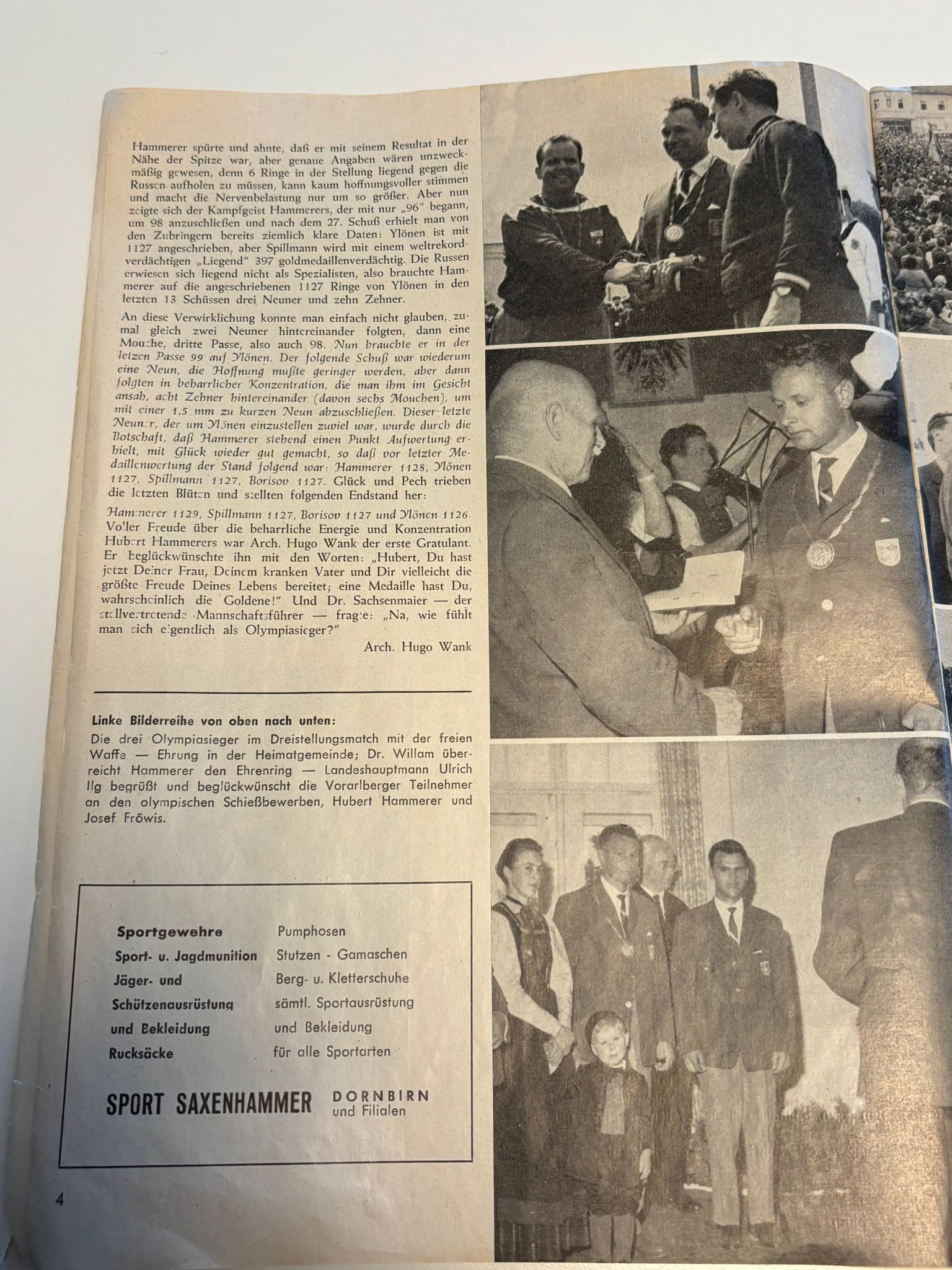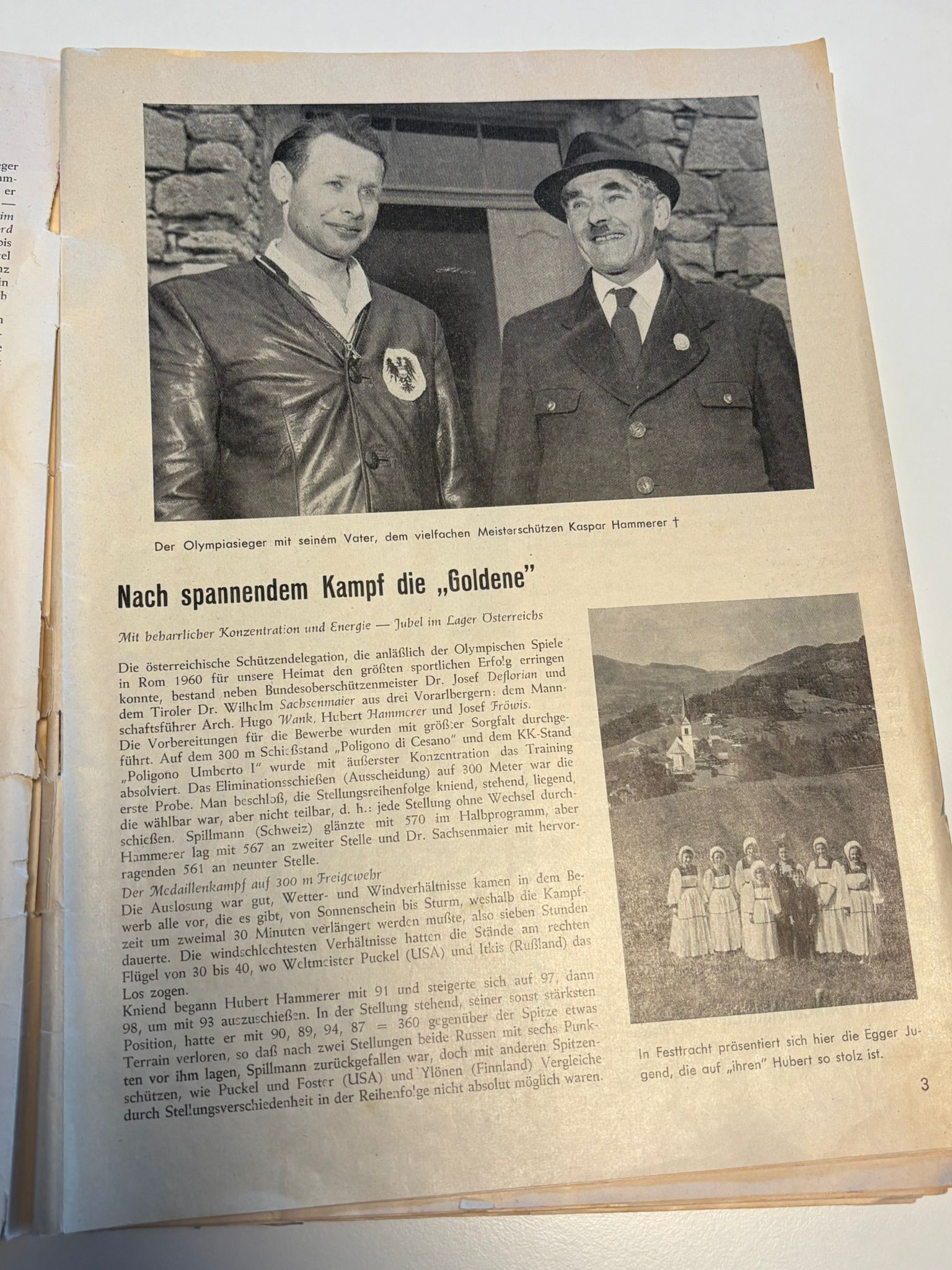 Alte Seiten der „Kleinen Illustrierten“ aus dem Jahr 1960 zeigen, wie groß die Begeisterung damals war. Nach seiner Rückkehr wurde Hammerer begeistert empfangen. In Egg und der Region gab es Feiern, Ehrungen und zahlreiche Gratulationen für den Olympiasieger.