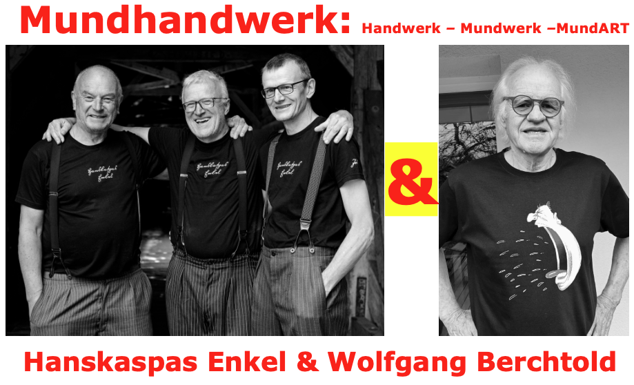 Dieses sprachliche Juwel lassen HANSKASPAS ENKEL und Wolfgang BERCHTOLD auf unterhaltsame Weise hochleben. Die Akteure können sich dabei auf ein eindruckvolles instrumentales HandWERK und auf ein munteres MundWERK verlassen.