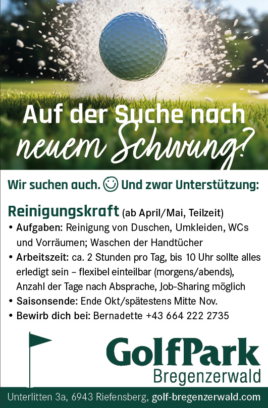 Auf der Suche nach neuem Schwung? Reinigungskraft für Golfpark gesucht
