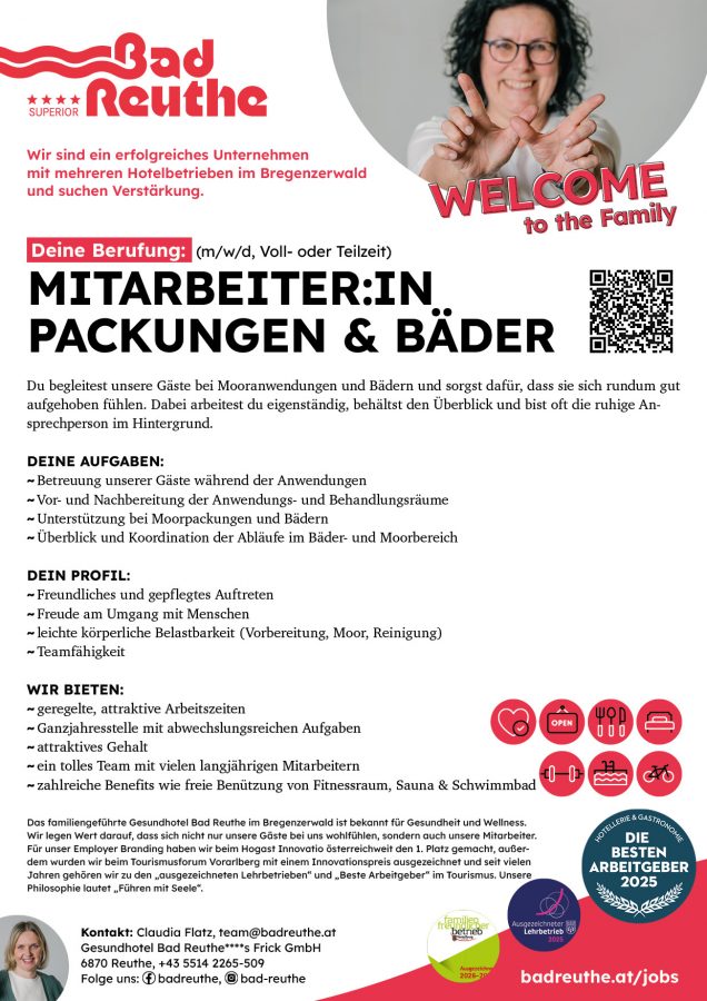 Kontakt: Claudia Flatz, +43 5514 2265-509, team@badreuthe.at