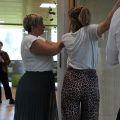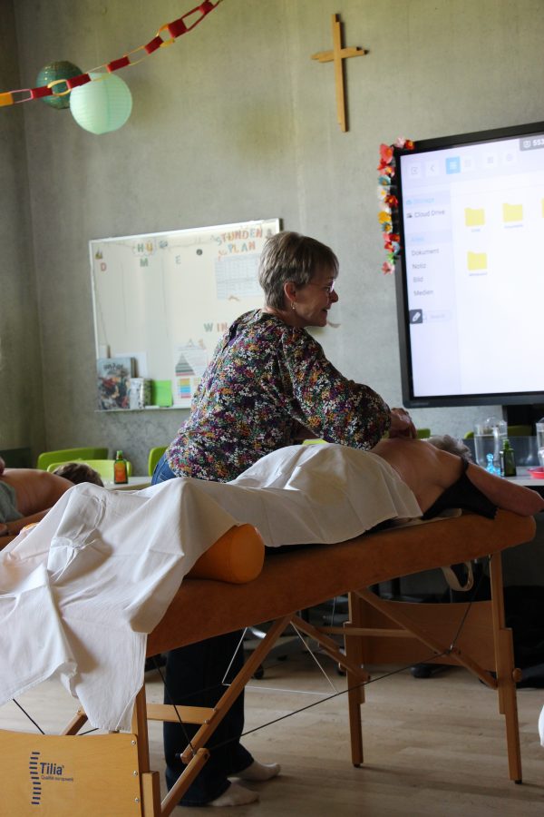 „Traut euch, einander anzugreifen. Ganz viel von dem, was ein Masseur tut, könnt ihr euch gegenseitig tun. Seid mutig und greift zu!“