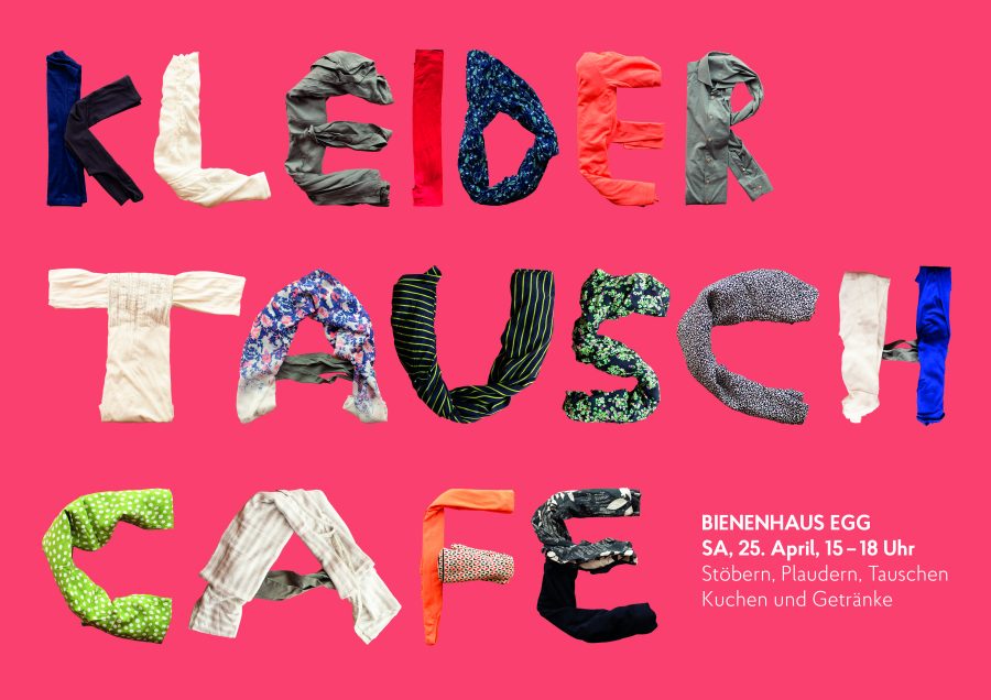 Wir laden euch ein. Am 25. April von 15.00 – 18.00 Uhr findet im Bienenhaus Egg unser Kleidertausch-Café statt. Ein feiner Nachmittag zum Stöbern, Plaudern und Tauschen – mit Getränken und Kuchen.