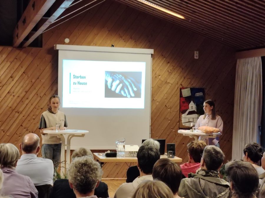Referentinnen des Abends waren Carmen Fröwis, psychiatrische Gesundheits- und Krankenpflegerin, sowie zertifizierte Trauerbegleiterin, und Magdalena Rüf, diplomierte Gesundheits- und Krankenpflegerin. Die beiden blicken auf einige Jahre Berufserfahrung auf der Palliativstation zurück.